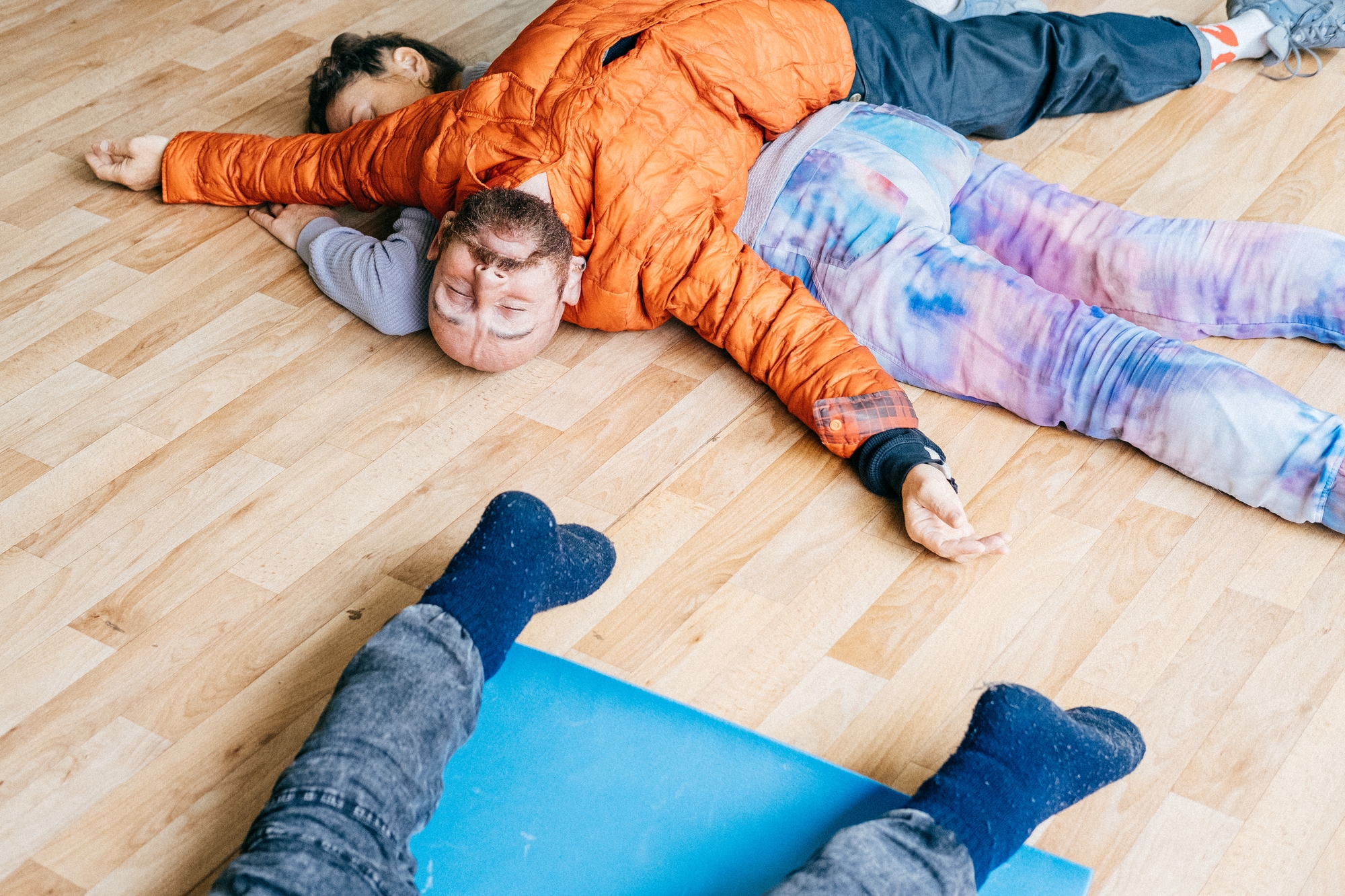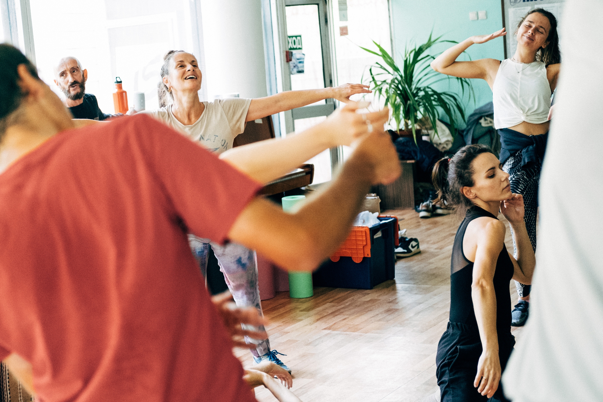 Практиковали и наблюдали такие выразительные средства, как речь, звучание, танец, движение, повседневные действия и инсталляция.