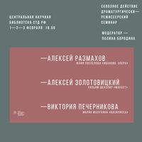 1 — 3 февраля в Центральной научной библиотеке СТД РФ в рамках проекта «Сквозное действие» состоялось три встречи с режиссёрами Алексеем Размаховым, Алексеем Золотовицким и Викторией Печерниковой. Публикуем фоторепортаж.